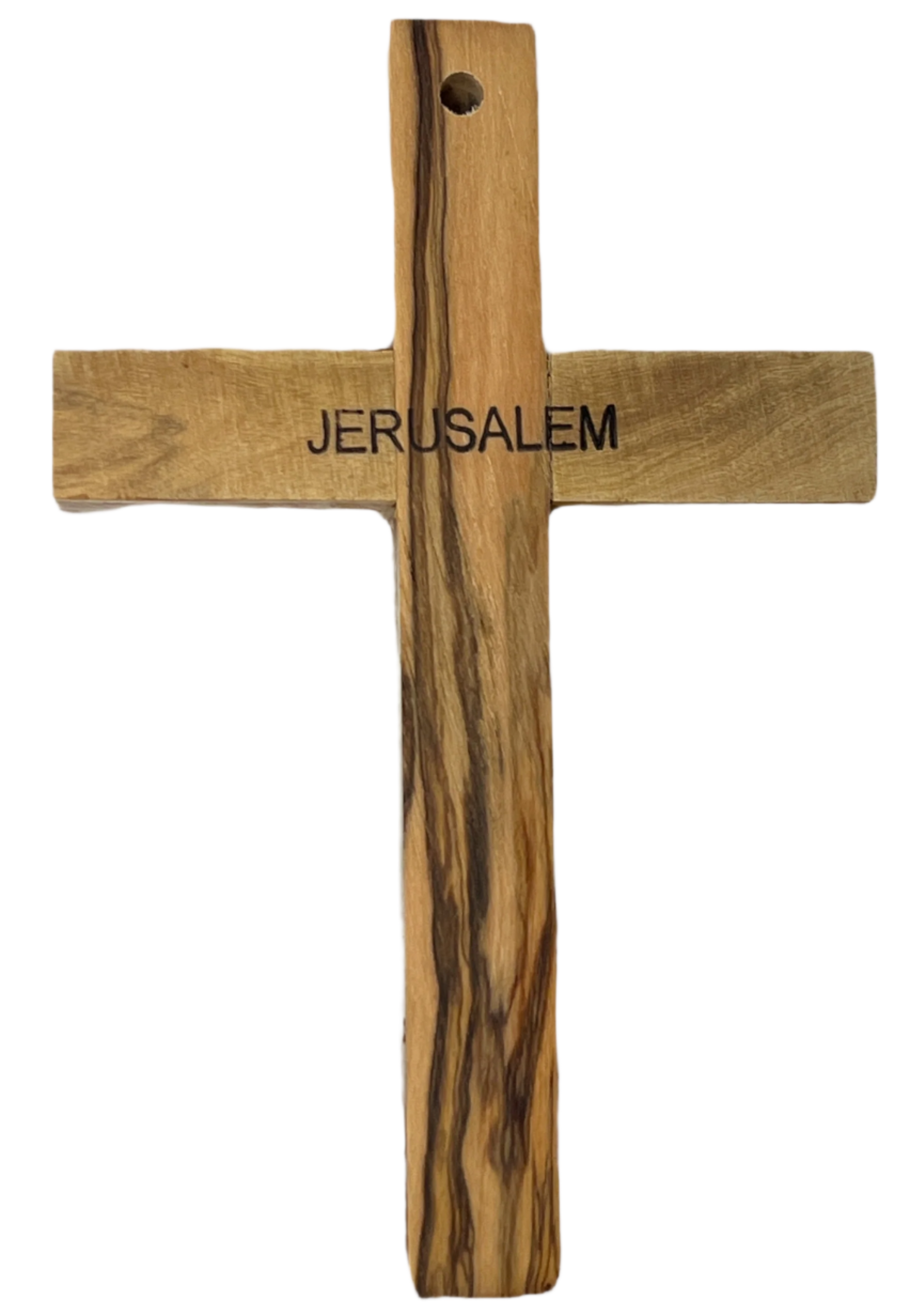 This handmade Latin Cross was made from Olive Wood from The Olive trees in Jerusalem, with Mother of Pearl outlined on the front.