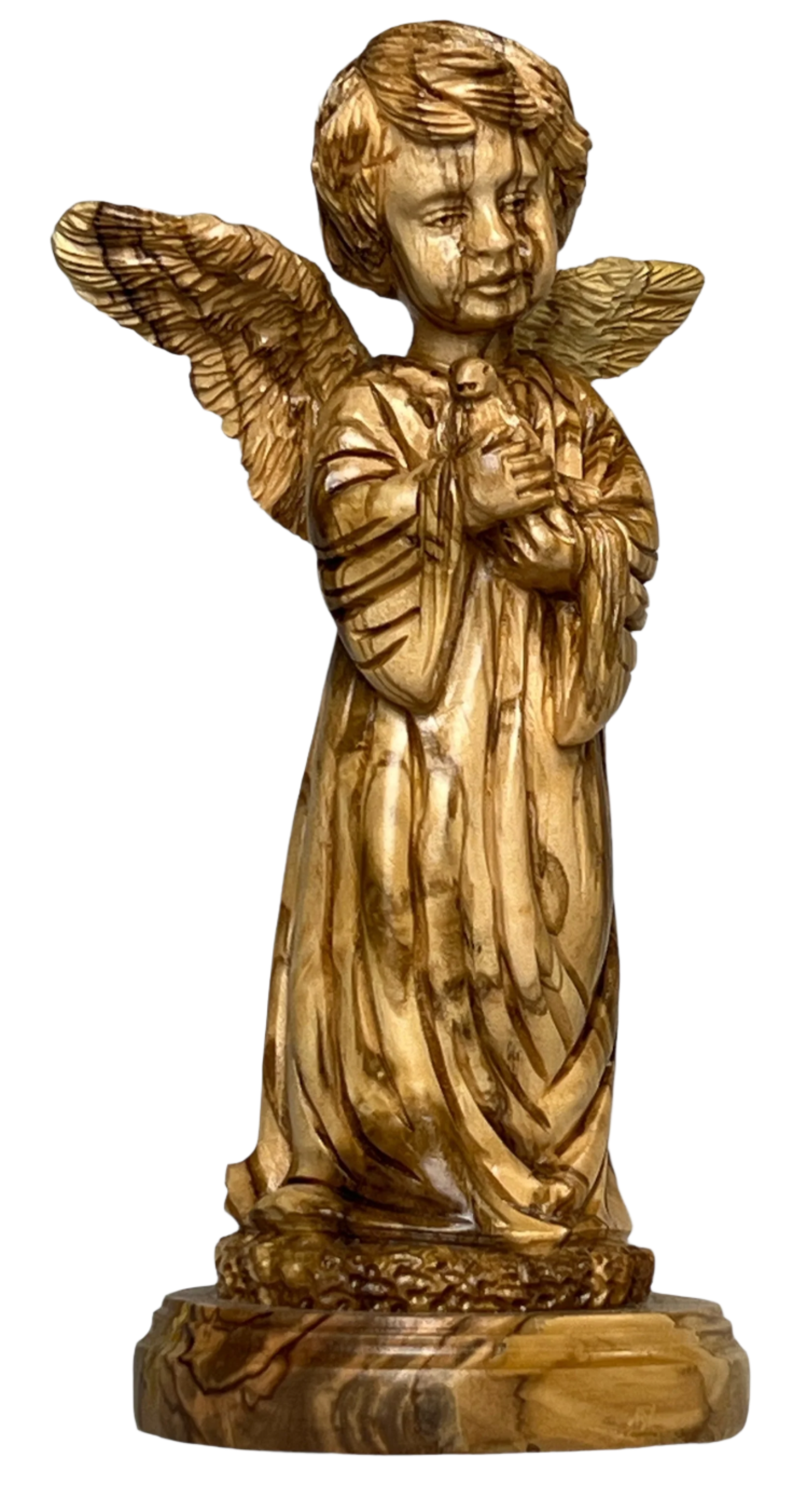 A beautiful hand carved Detailed Angel of Peace. Made with Olive Wood from the Olive Trees.