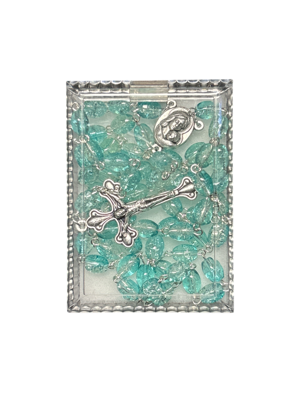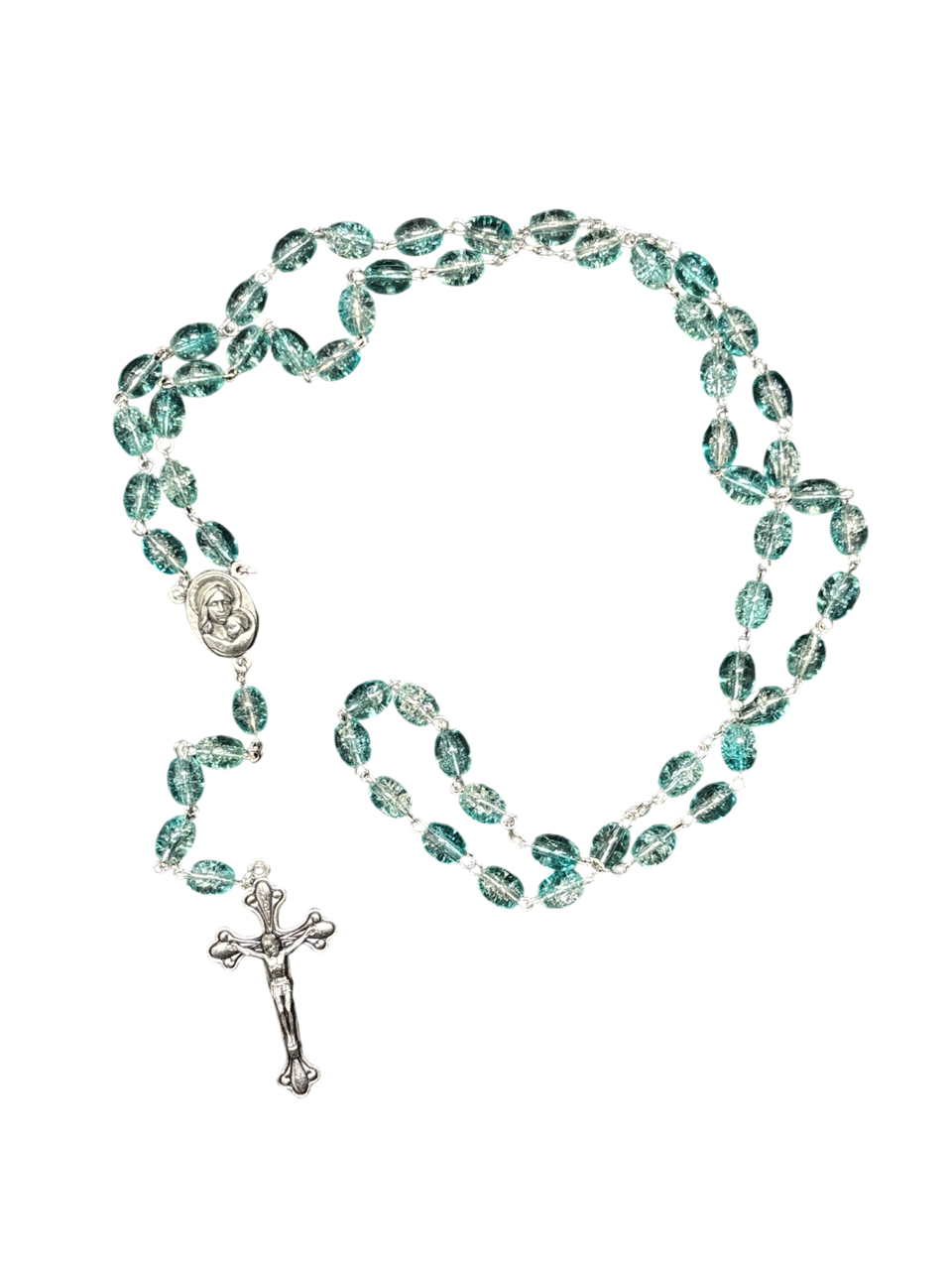 Handmade Aqua crystal Rosary from Jerusalem , Crafted by Christians in The Holy Land.
