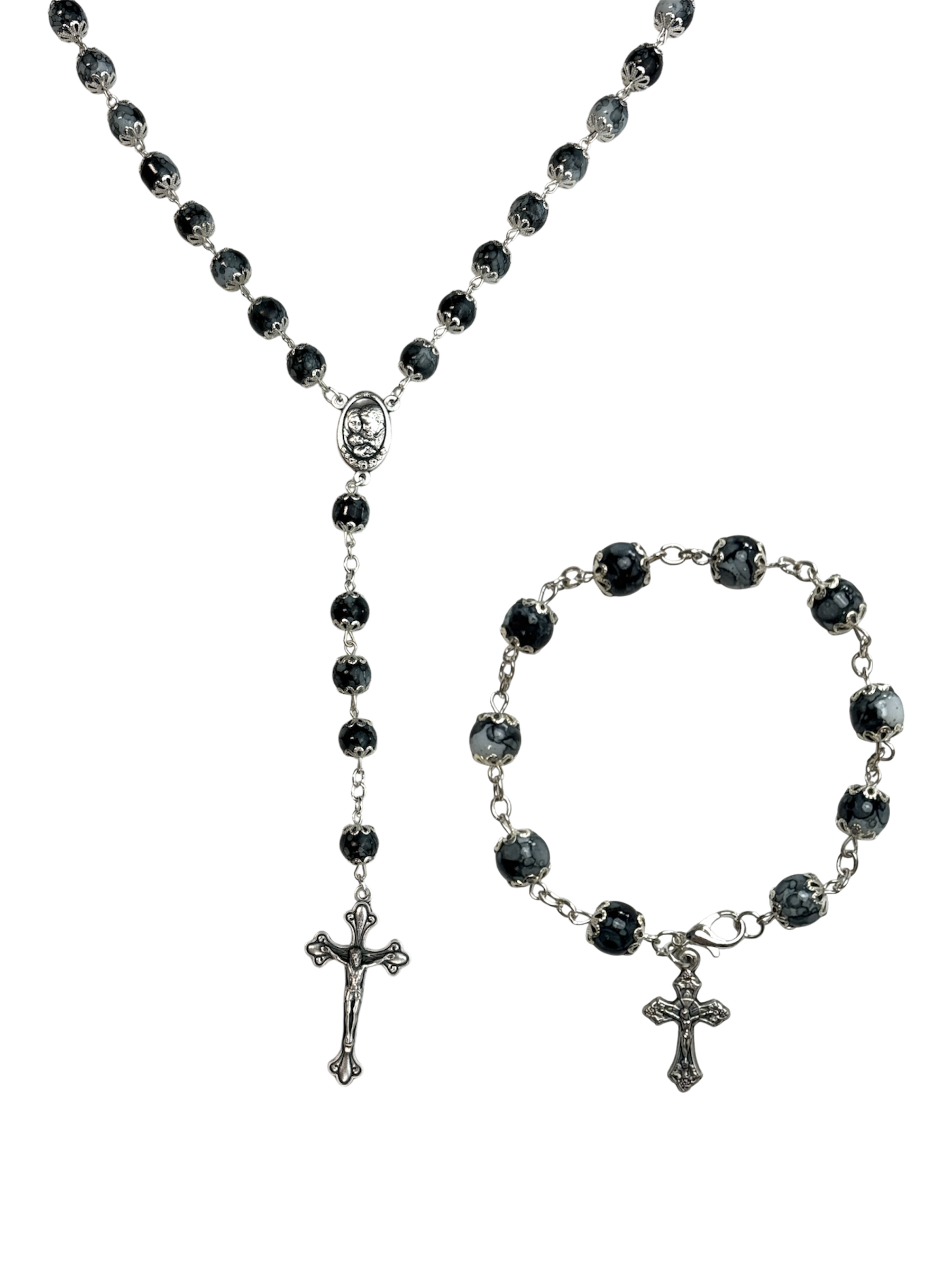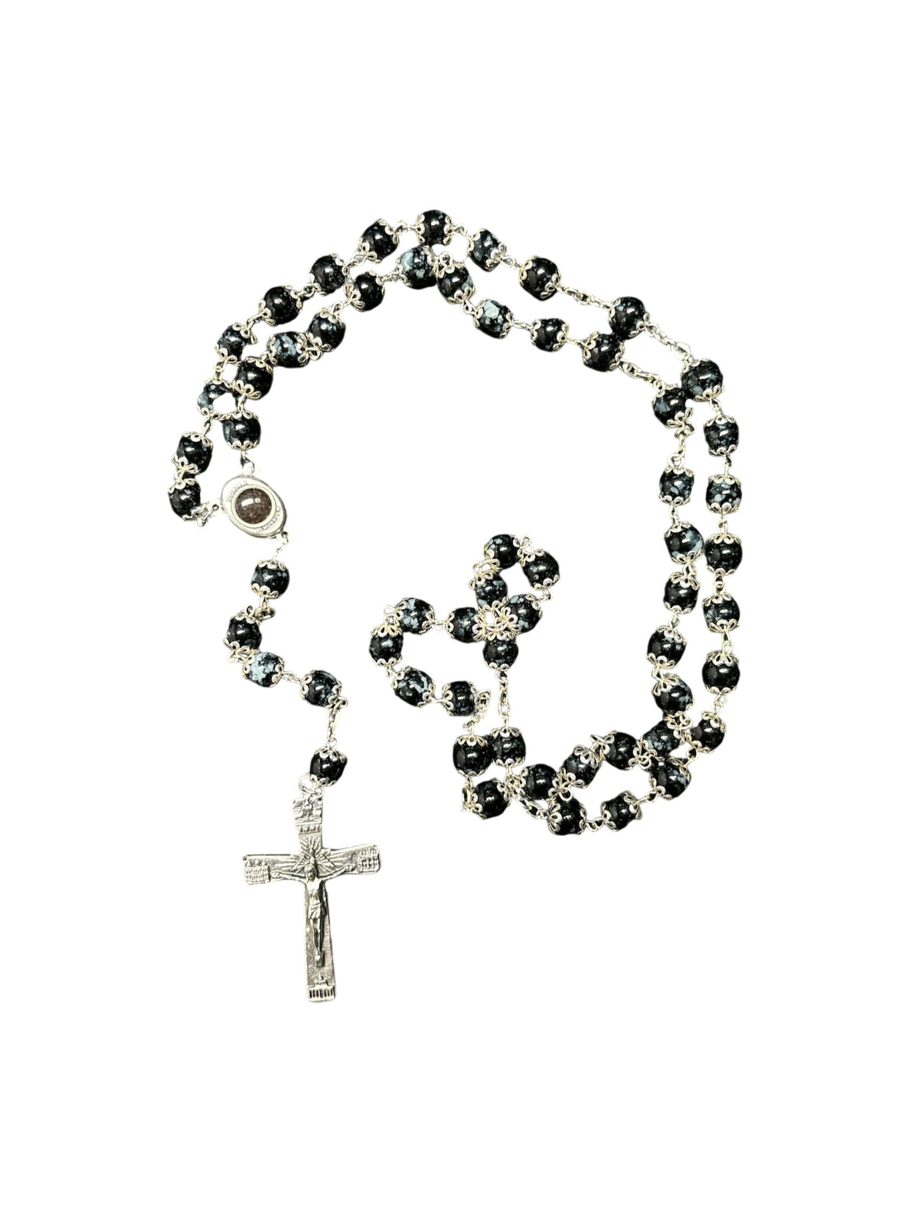 Handmade Black Coral Bracelet and Rosary. Crafted by Christians in The Holy Land.