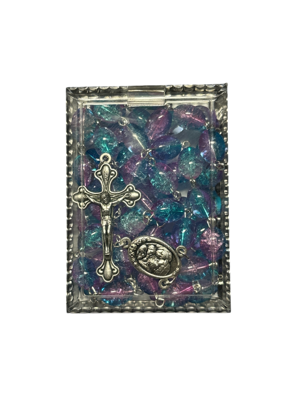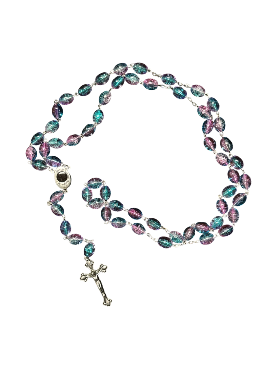 Handmade Purple and Teal crystal Rosary from Jerusalem , Crafted by Christians in The Holy Land.