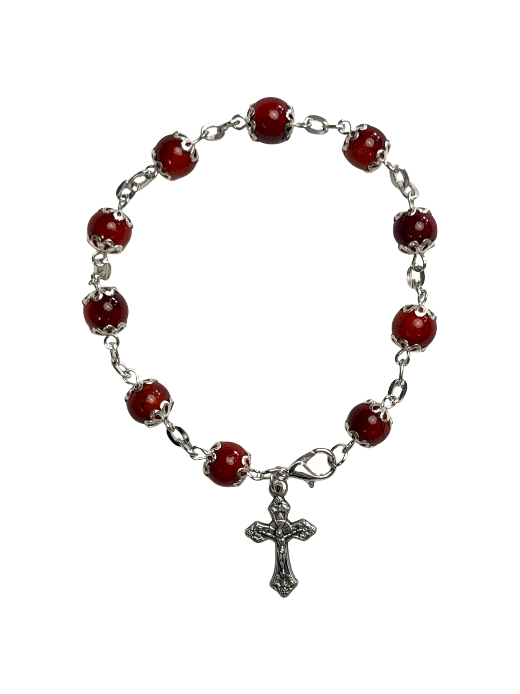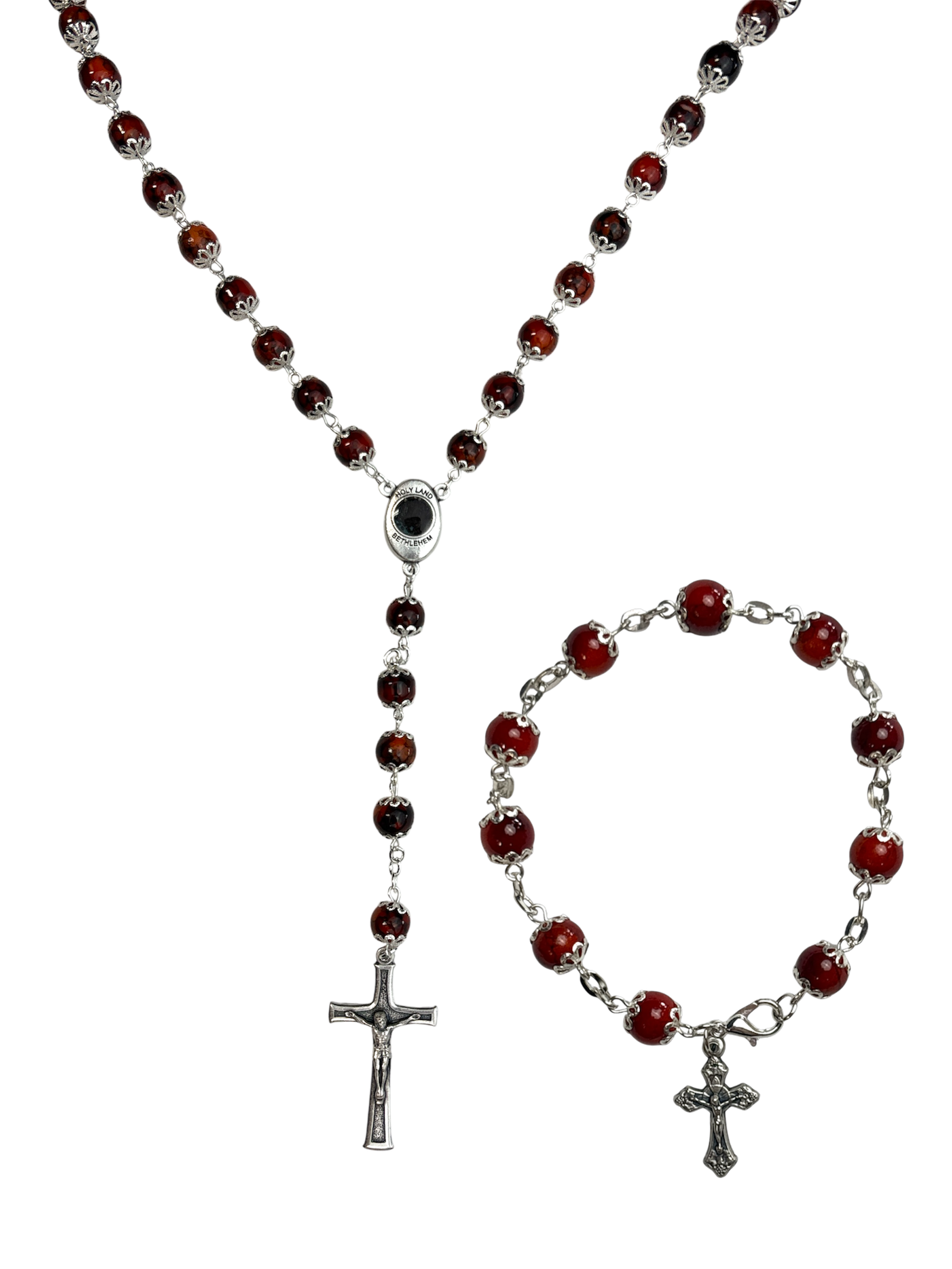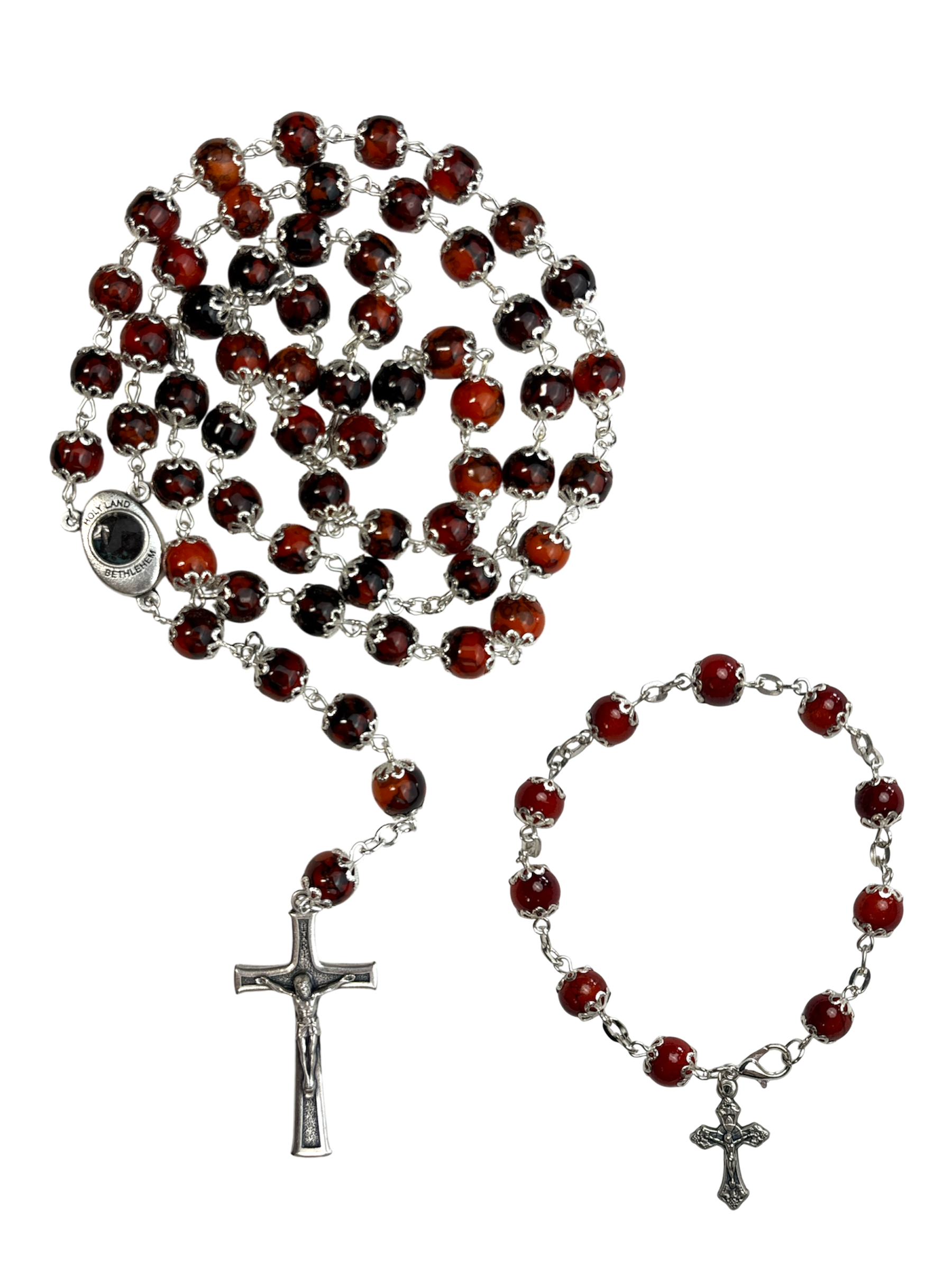 Handmade Burnt Red Coral Bracelet and Rosary. Crafted by Christians in The Holy Land.