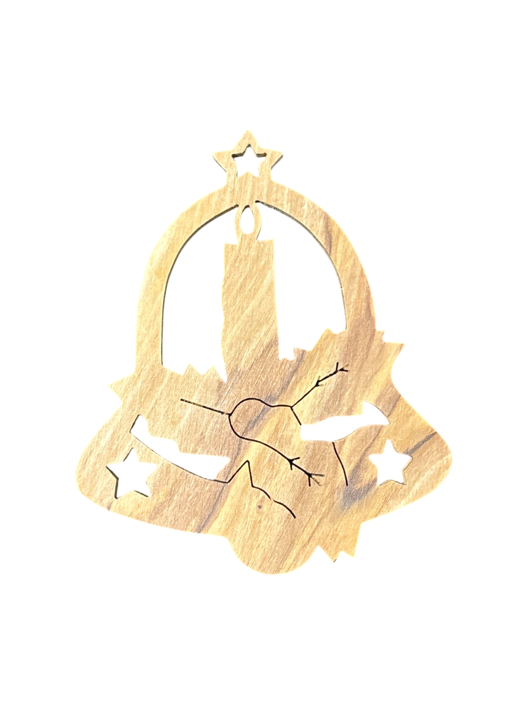 Candle, Olive Wood Christmas Ornament. This olive wood ornament was crafted by local artisans in the Holy Land of Bethlehem