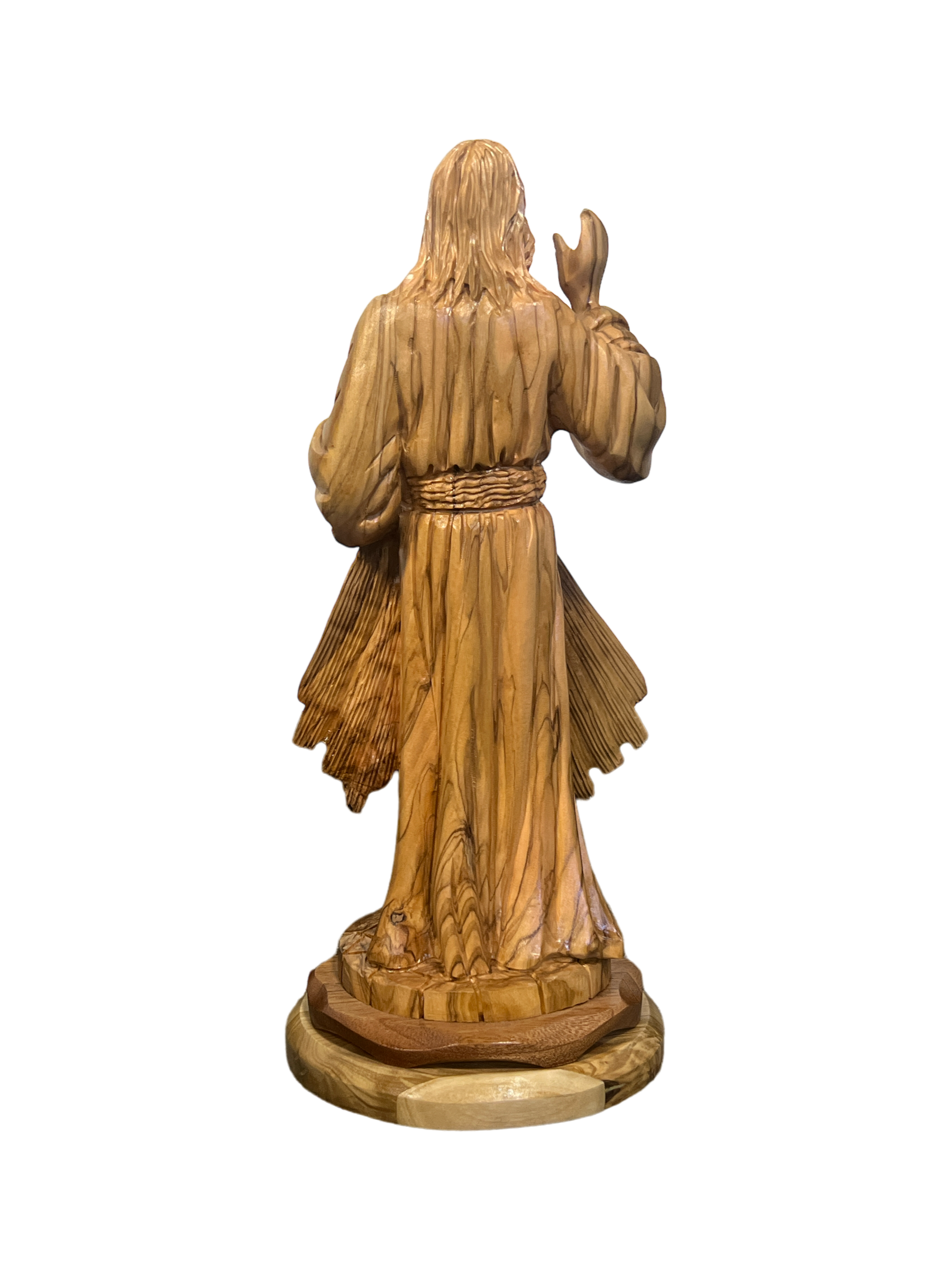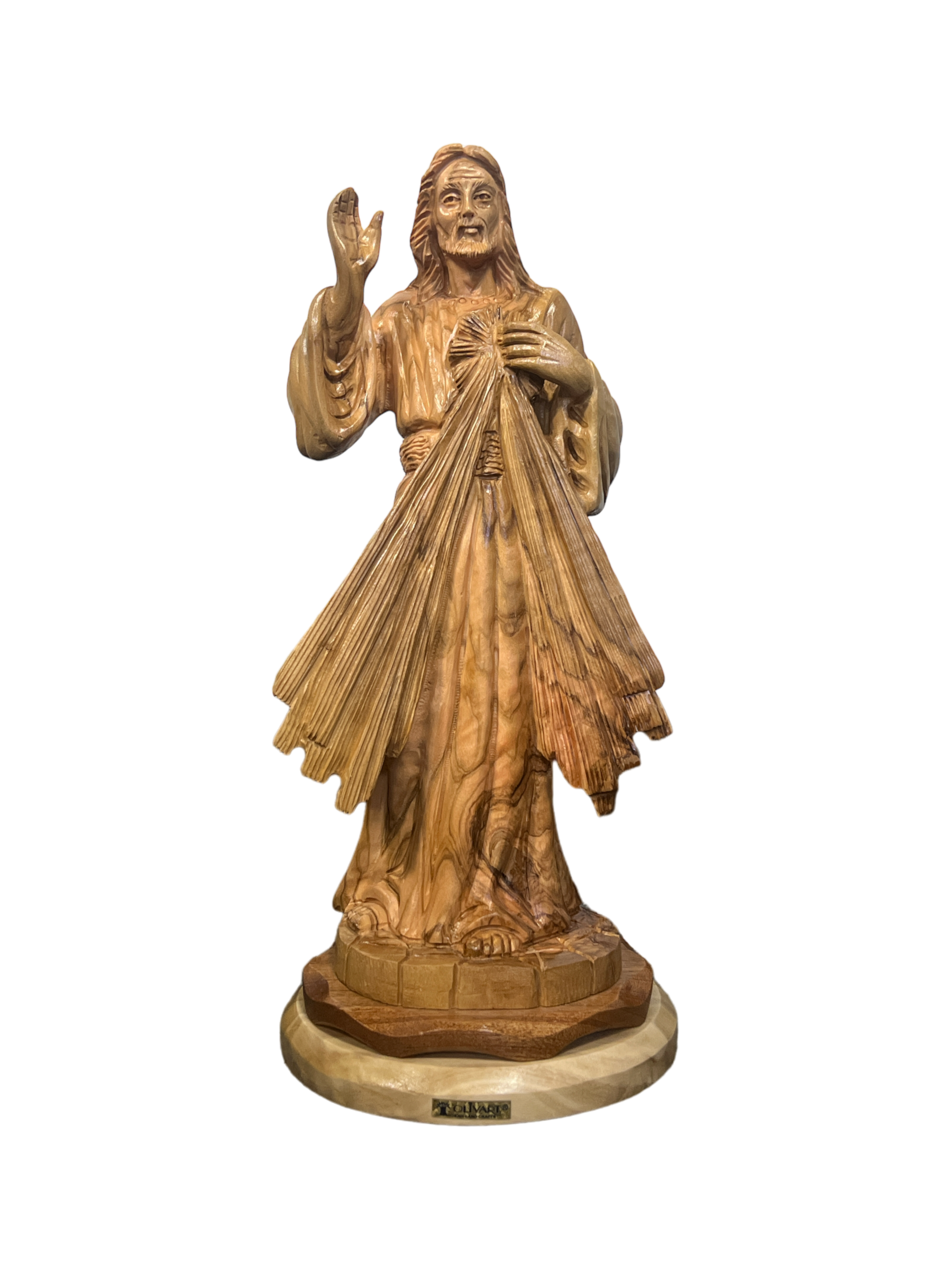 A beautiful Hand Carved Devine Mercy Statue. The wood the artists use is the Olive Wood from the Holy Olive Trees.