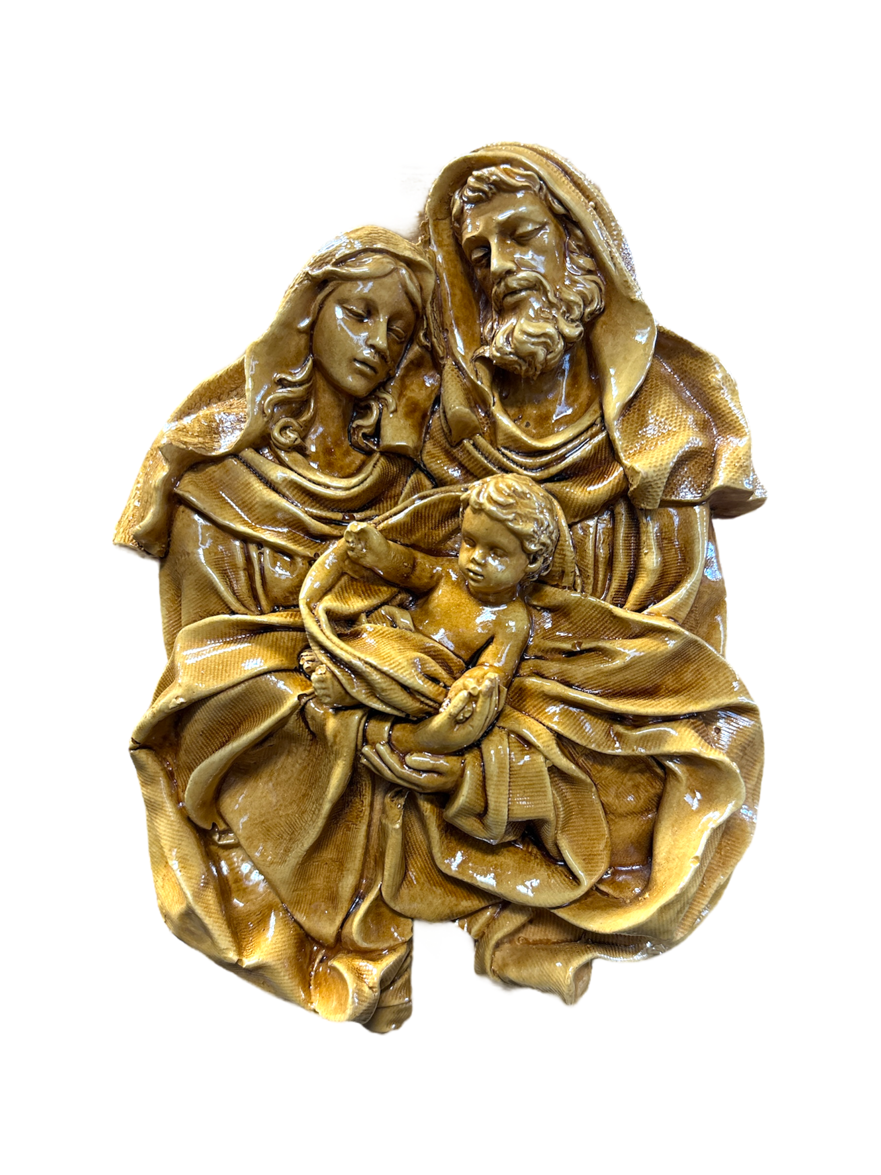 Beautiful flower shaped Plate Hand Carved by Christian Families in Jerusalem made with olive wood from the mother land. it also includes Rocks from the Jordan River at the bottom under the Holy Family.