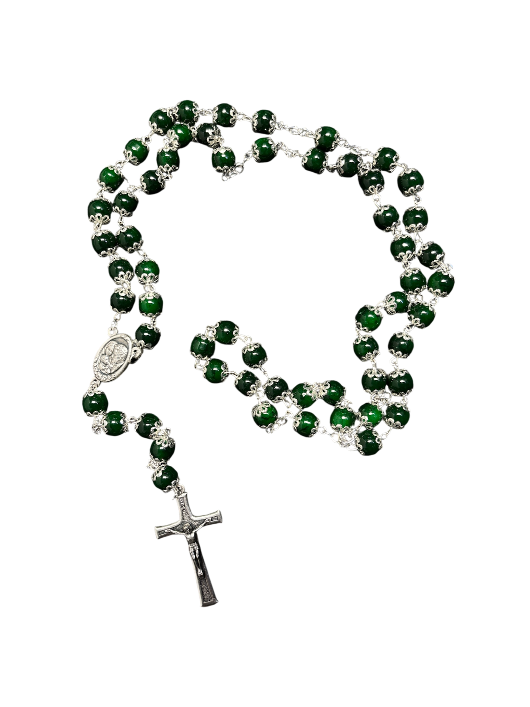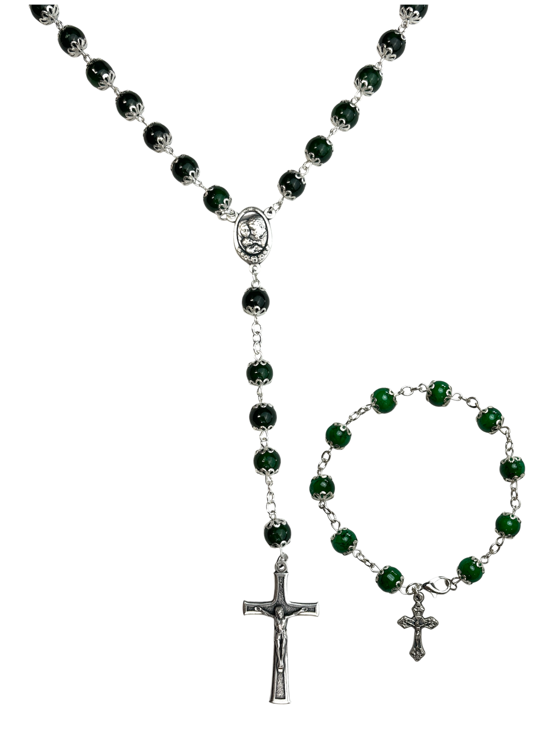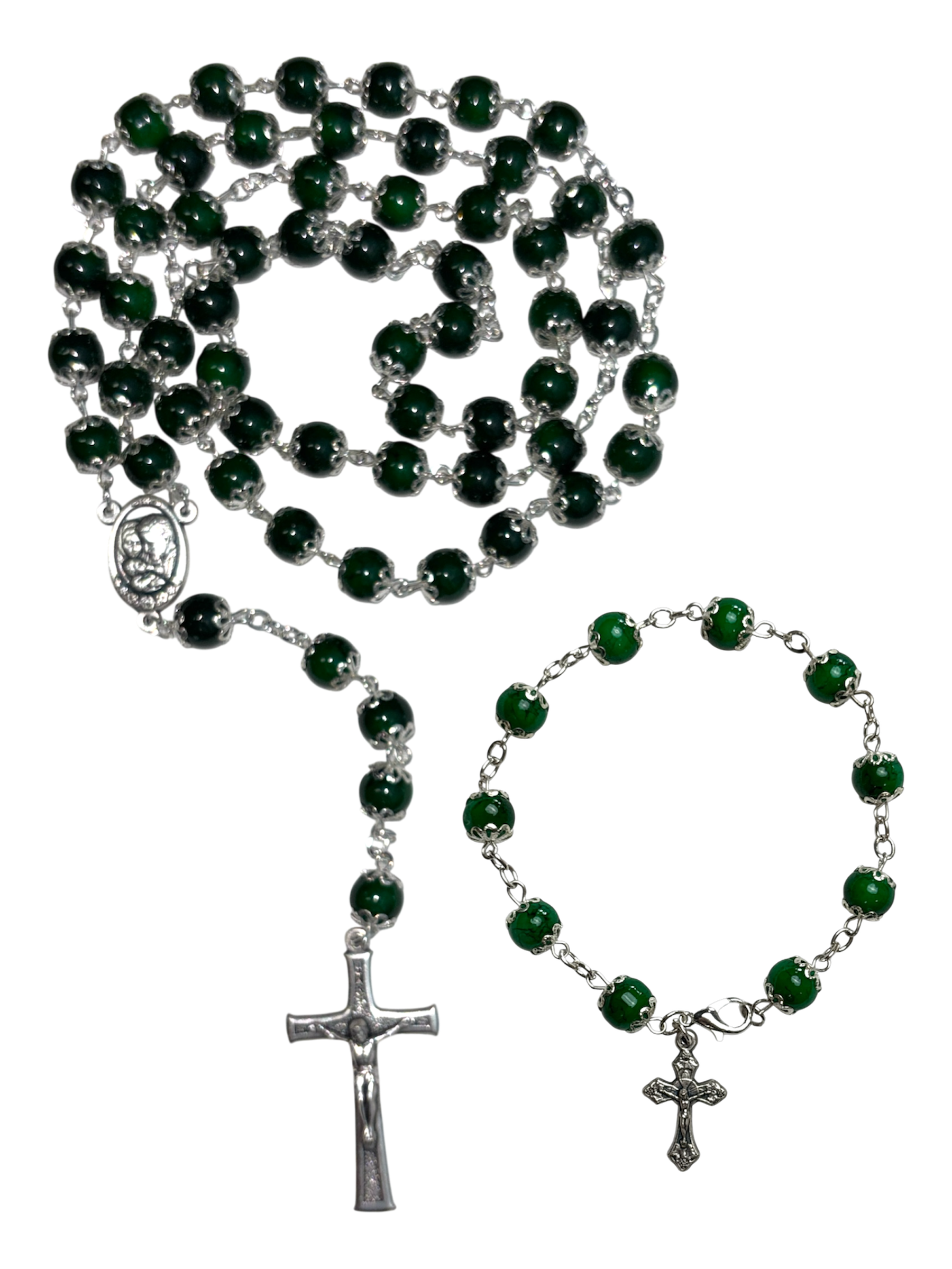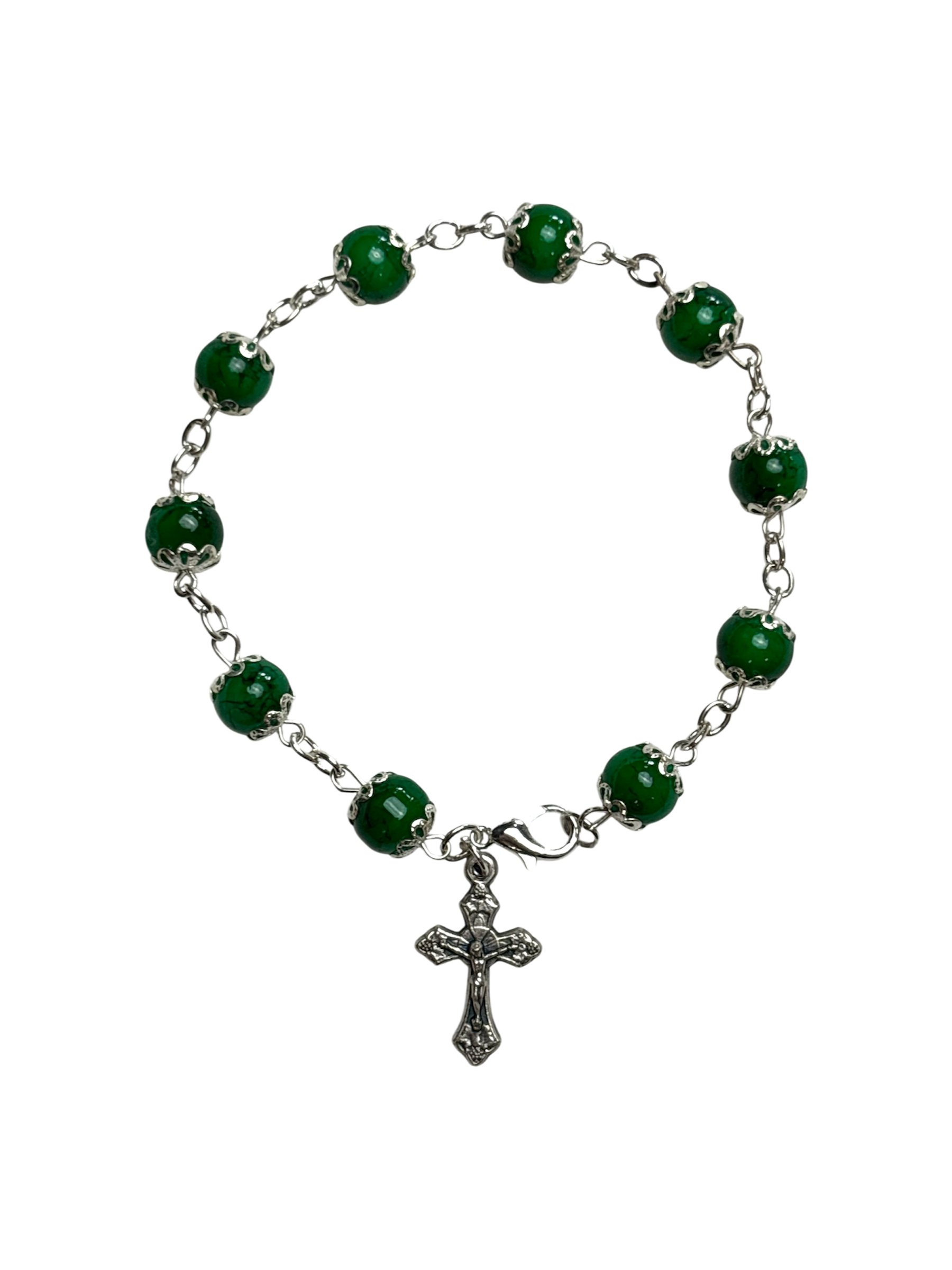 Handmade Green Coral Bracelet and Rosary. Crafted by Christians in The Holy Land.