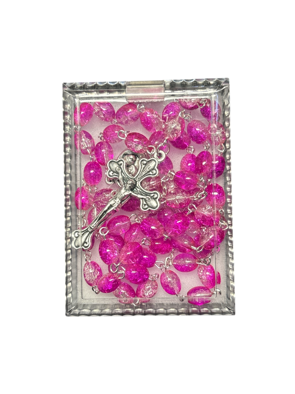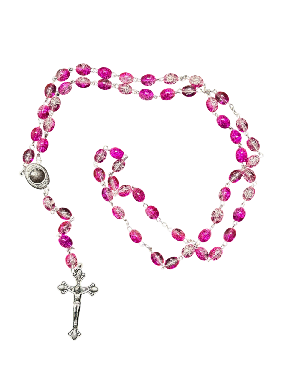 Handmade Pink crystal Rosary from Jerusalem , Crafted by Christians in The Holy Land.