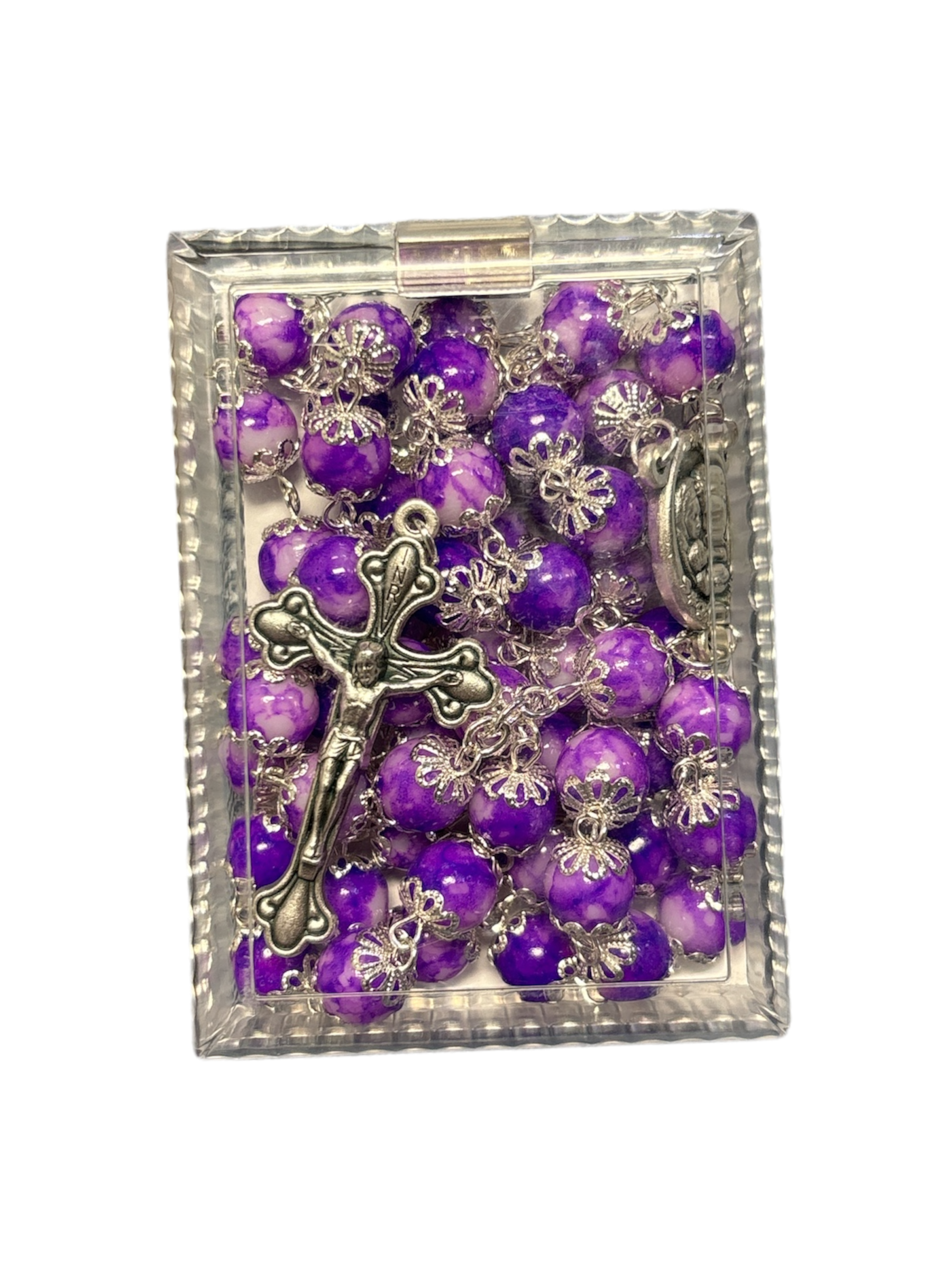 Handmade Purple Coral Rosary. Crafted by Christians in The Holy Land.
