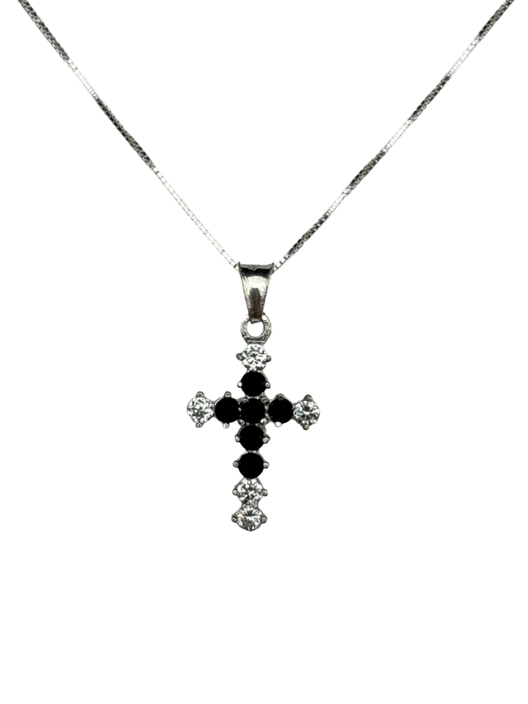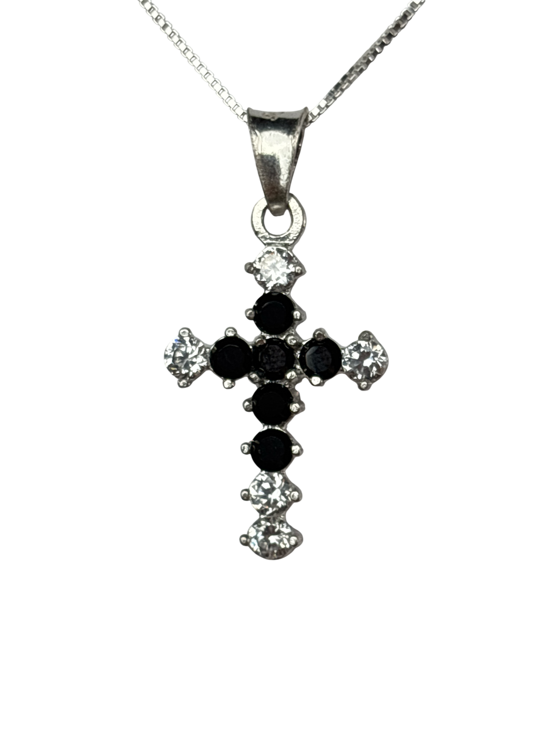 A beautiful Black and White Gemstone Cross handmade by Christians in Jerusalem, with a 45 CM sterling silver Necklace.