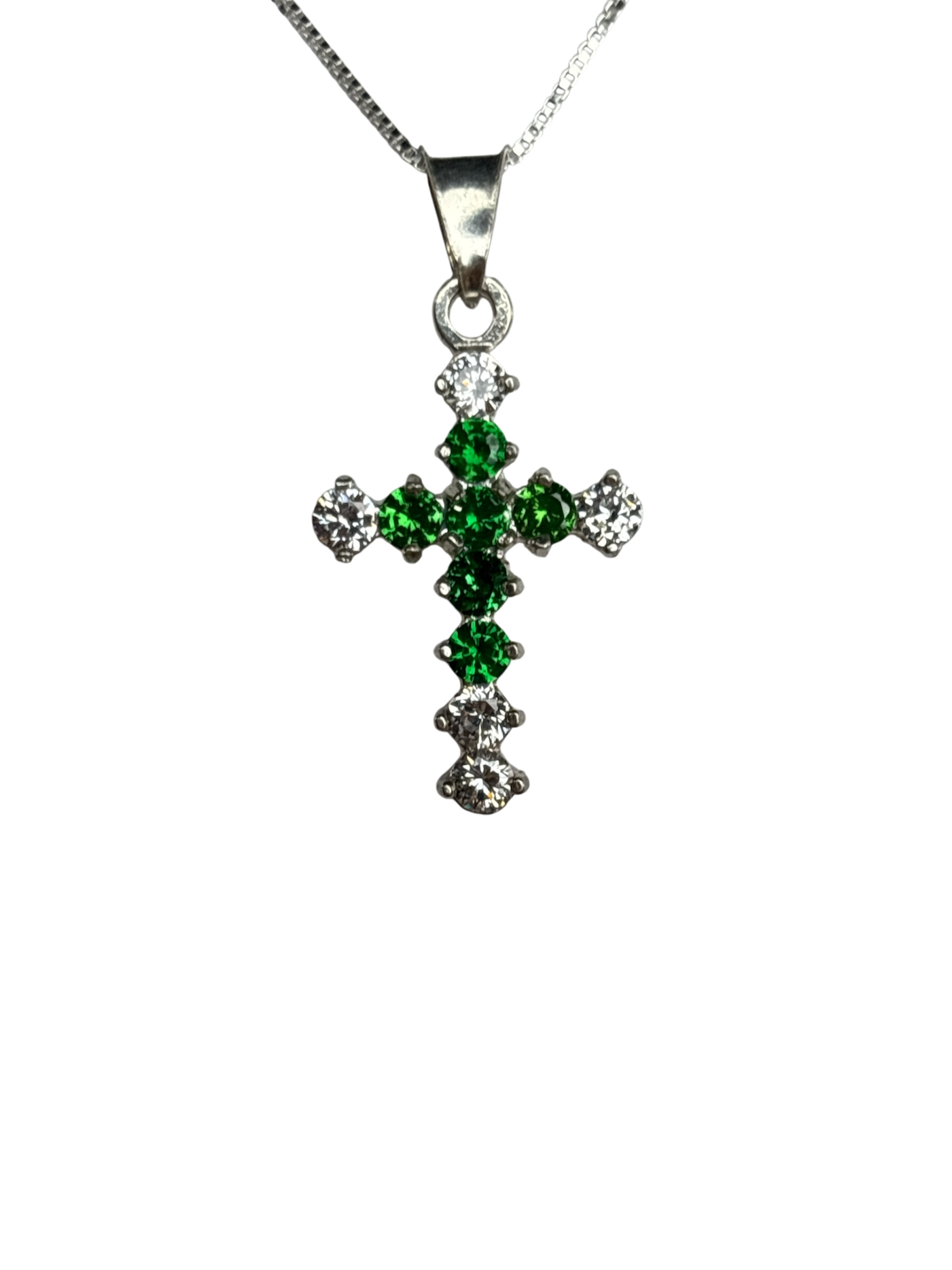 A beautiful Green and White Gemstone Cross handmade by Christians in Jerusalem, with a 45 CM sterling silver Necklace.