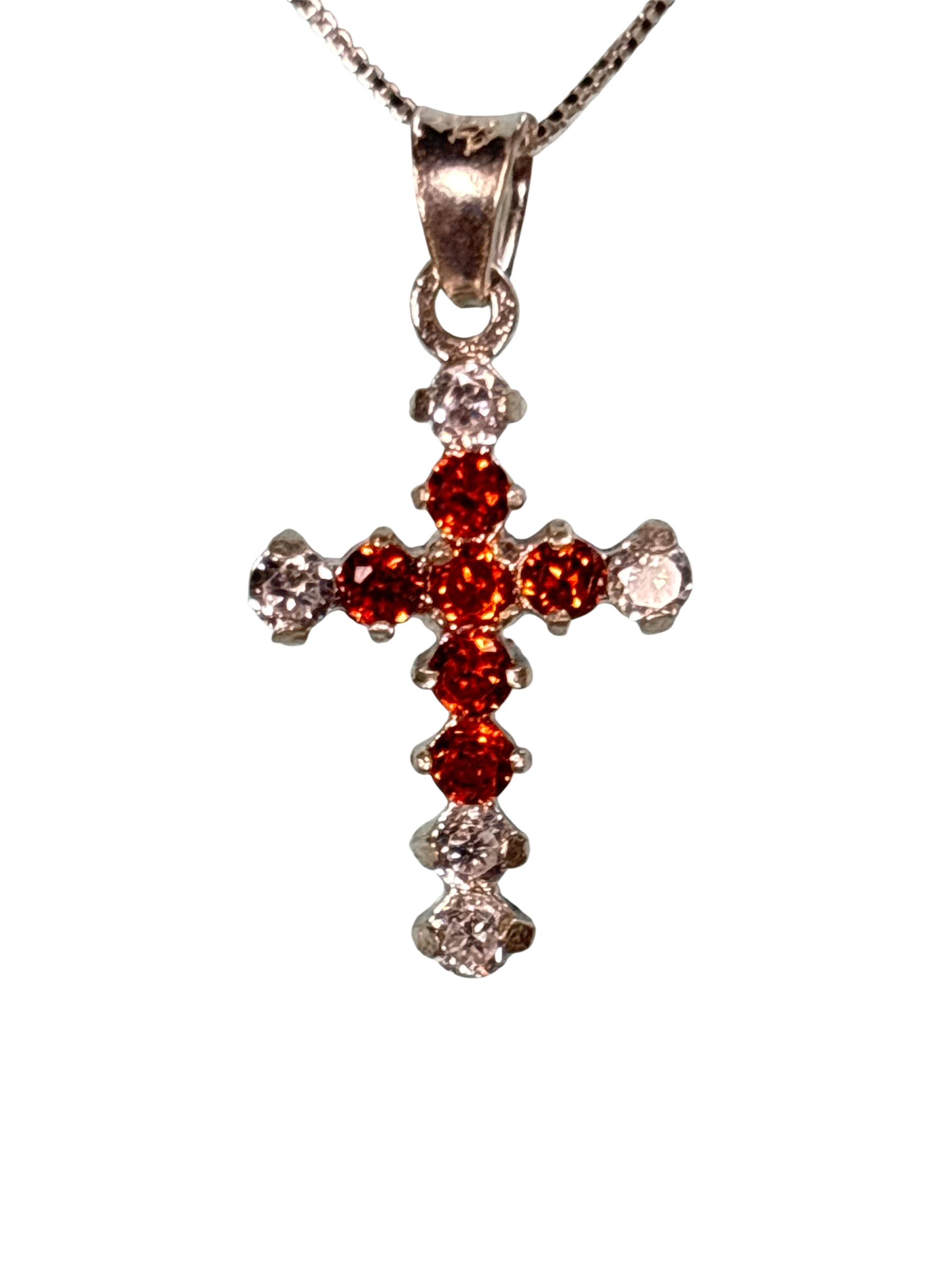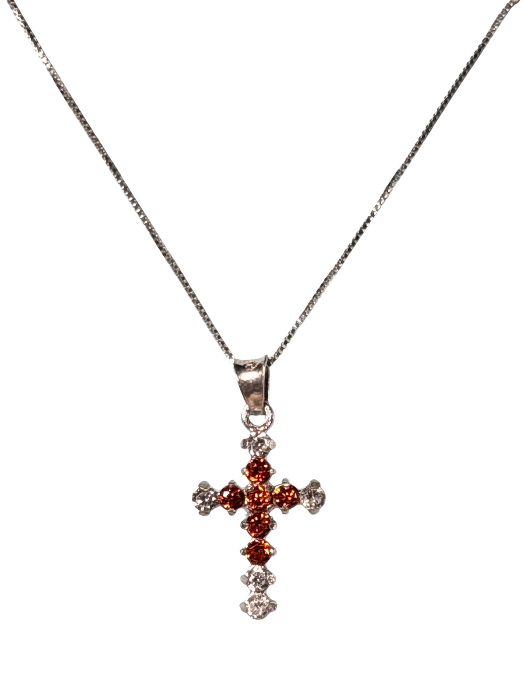 Sterling Silver Necklace with orange gemstone Cross