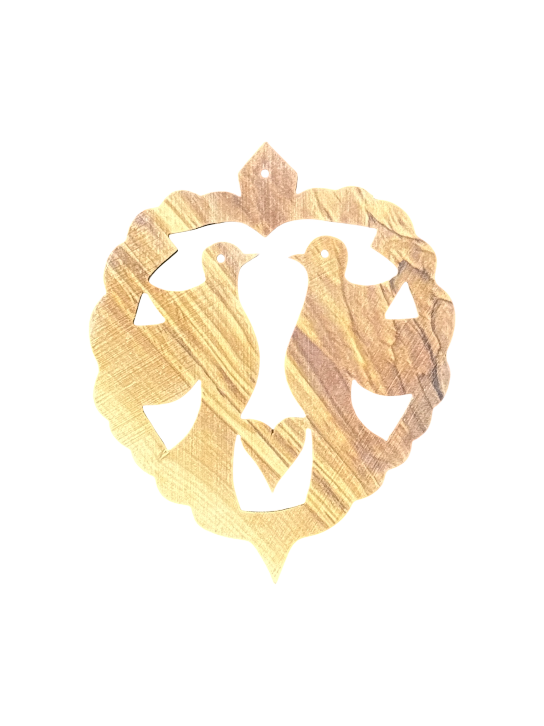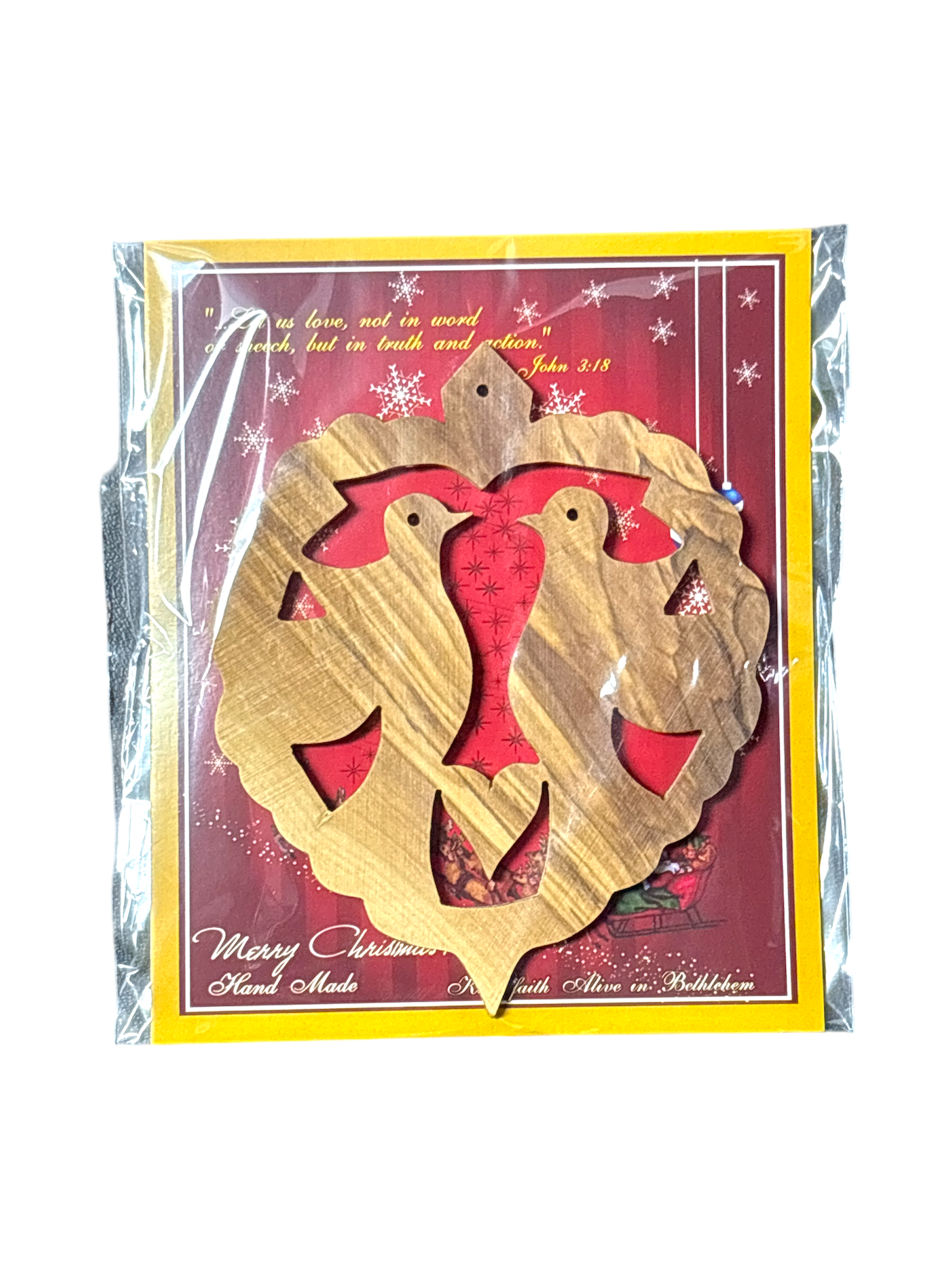 Dove, Olive Wood Christmas Ornament. This olive wood ornament was crafted by local artisans in the Holy Land of Bethlehem