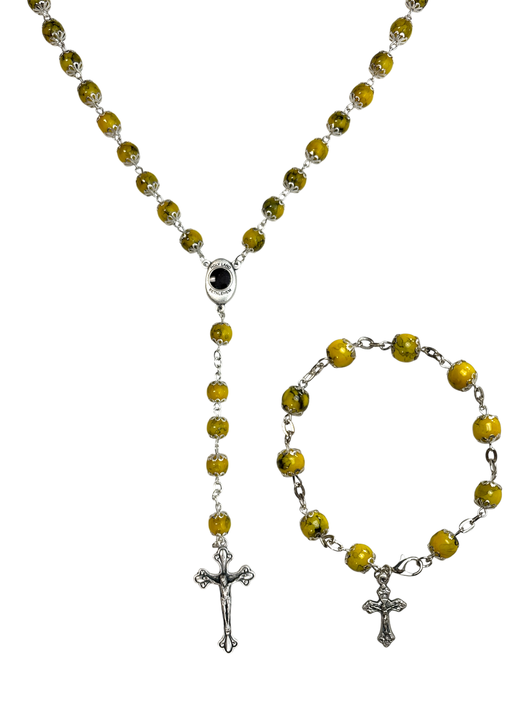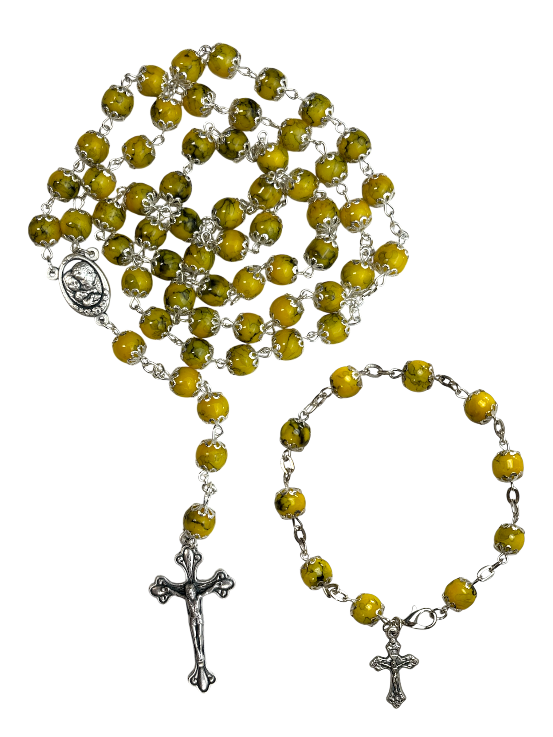 Handmade Yellow Coral Bracelet and Rosary. Crafted by Christians in The Holy Land.